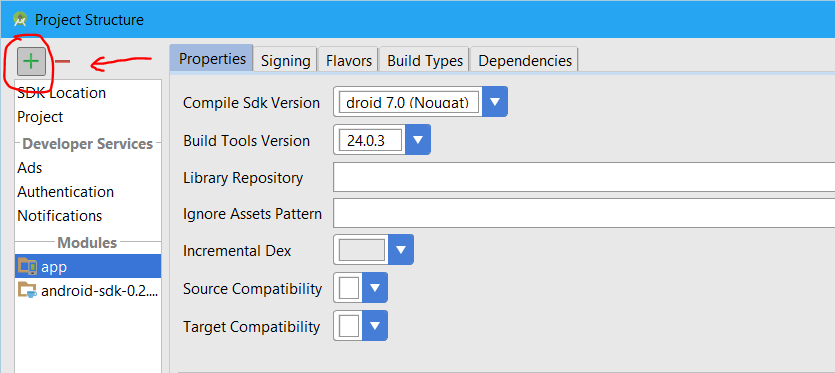 - Kembali ke Module Settings, klik tab Depedencies dan kemudian klik icon plus pada bagian kanan