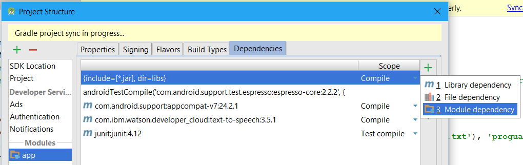 compile 'com.ibm.watson.developer_cloud:text-to-speech:3.5.1' - Klik “Sync Now” pada bagian pojok kanan atas