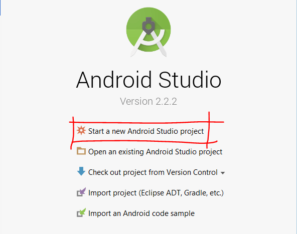 - Buka Android Studio, kemudian klik “Start new Android Studio project”
