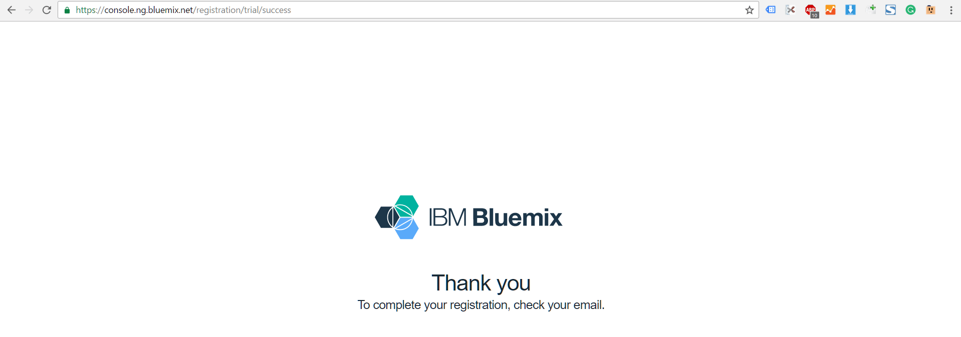 2. Screenshot email konfirmasi pendaftaran ke Bluemix yang terlihat: