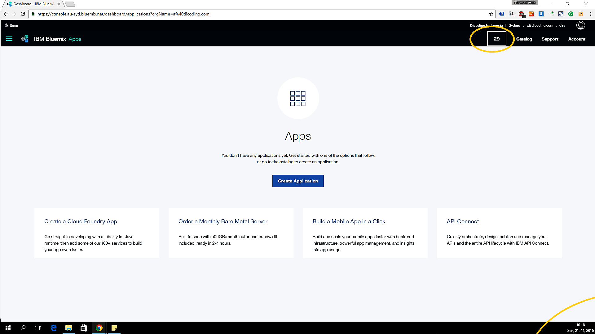 - Kemudian log-in setelah verifikasi di https://console.ng.bluemix.net/ dengan menggunakan email dan password yang sudah Anda isi sebelumnya