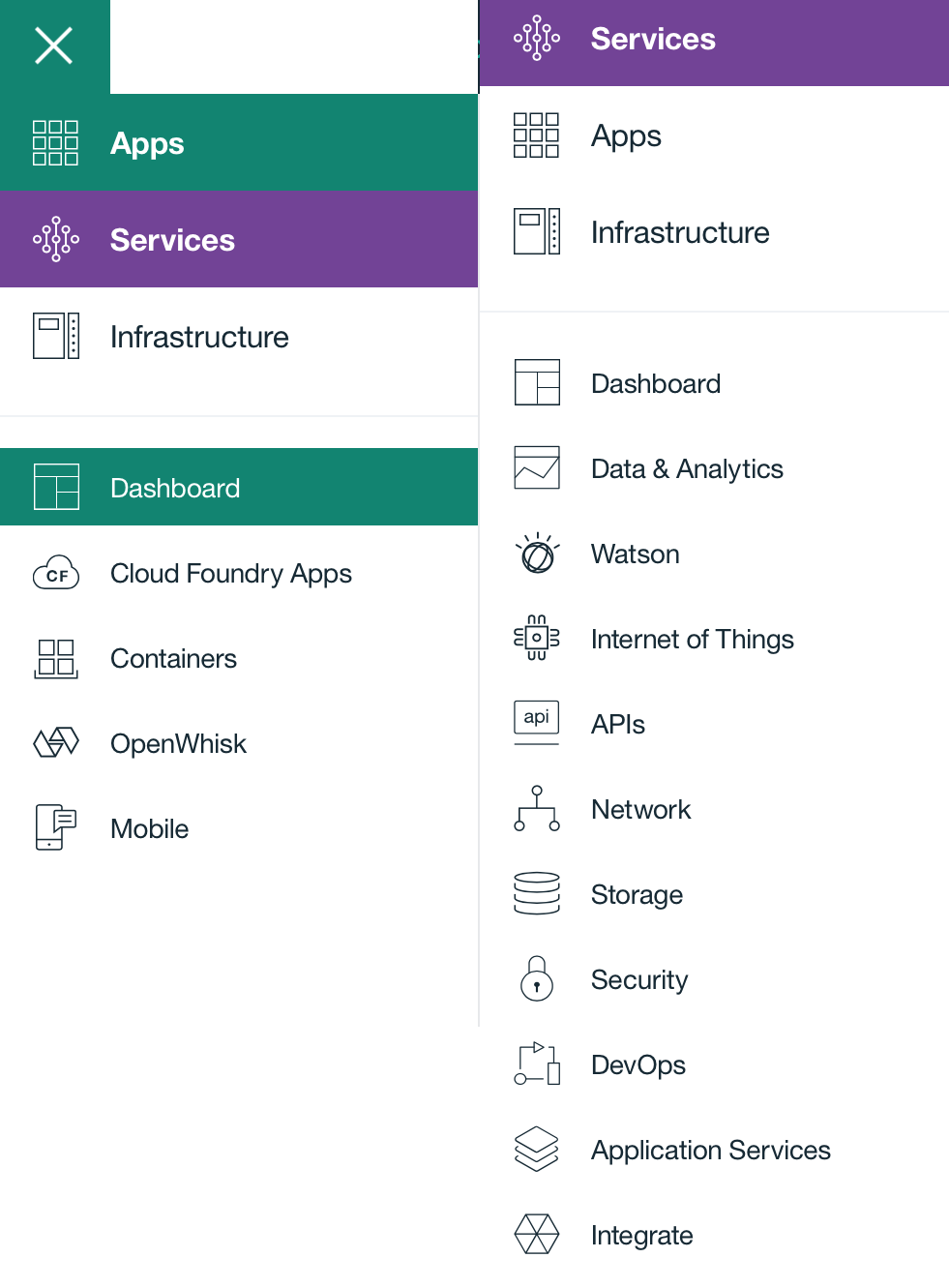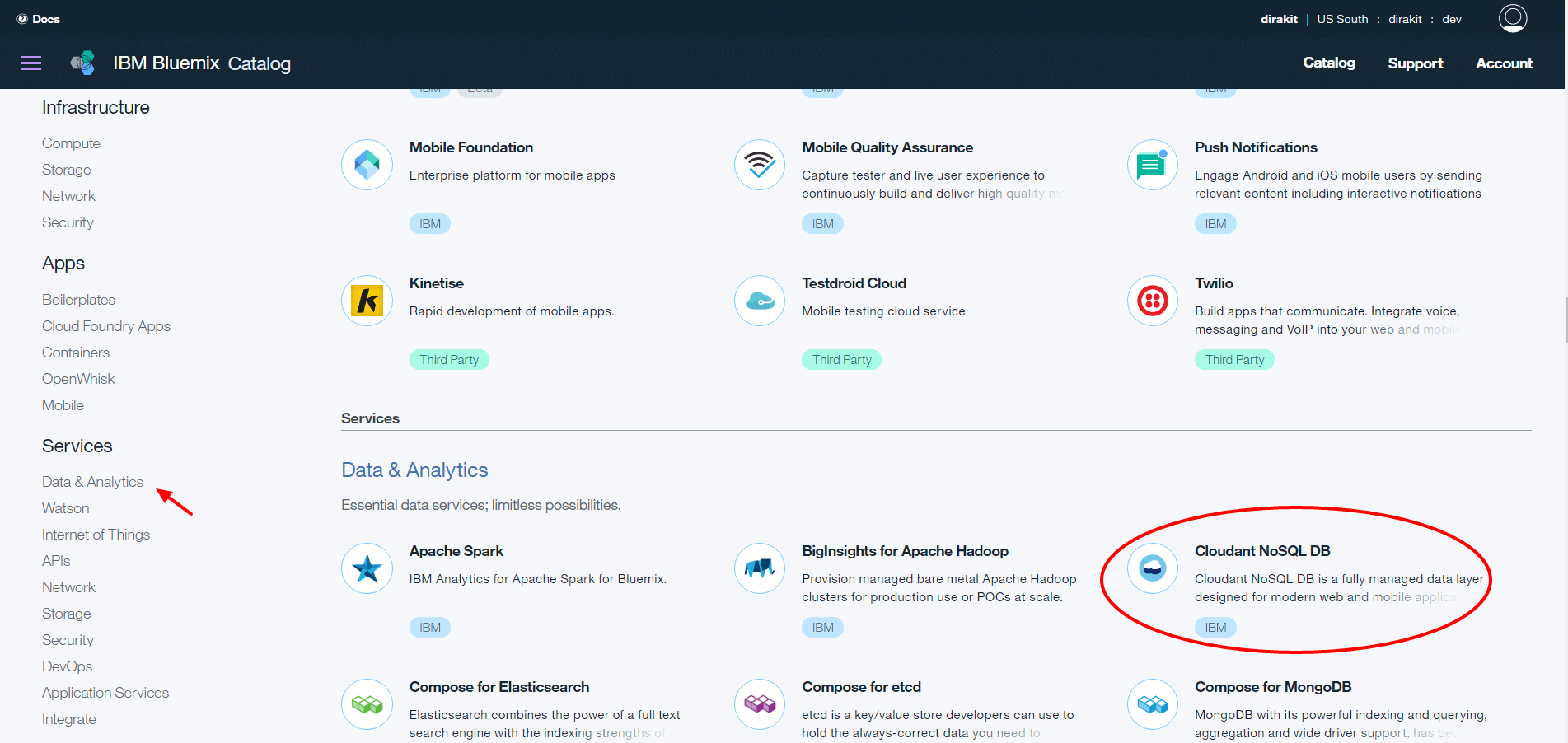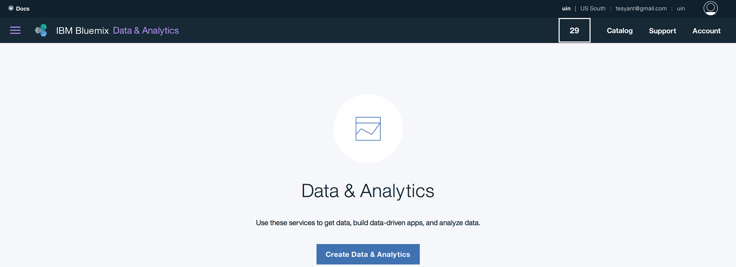 - Login ke Dashboard Bluemix Anda, klik side menu dan pilih Service > Data & Analytic
