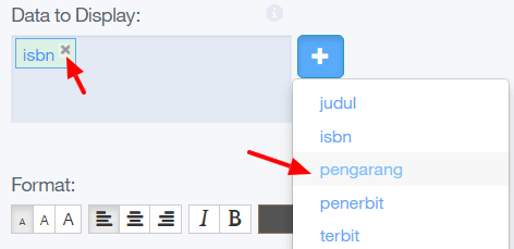 - Sesuaikan Data yang akan ditampilkan, misalnya ubah data ISBN ke data PENGARANG.