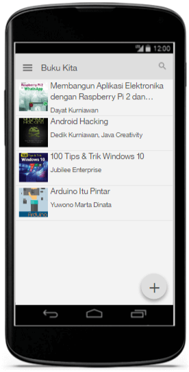 - Atur Buku Kita Form screen seperlunya, atau biarkan default. Screen ini akan digunakan untuk menambah atau mengubah data buku.