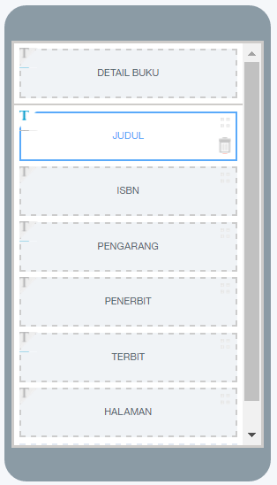 - Klik Buku Kita Detail screen untuk memodifikasi detail screen. Atur Detail screen seperti berikut: